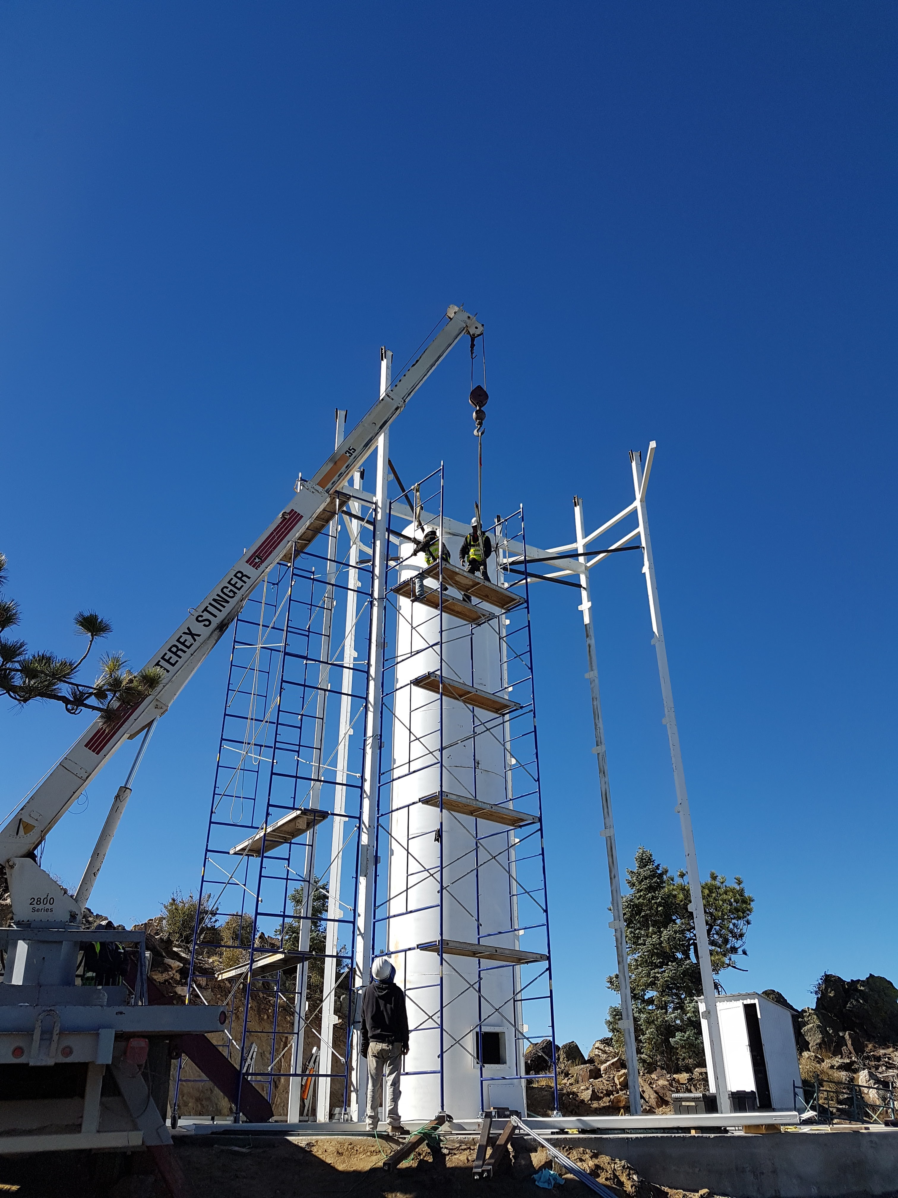 Construction of the three TAOS II telescope enclosures commenced on 29 August 2016, after all of the parts were delivered to SPM Observatory.